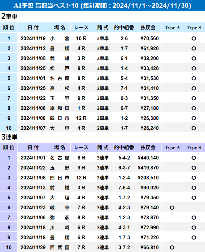 Loto Placeで提供しております”AI予想”の”高配当ベスト10”をお知らせします!
