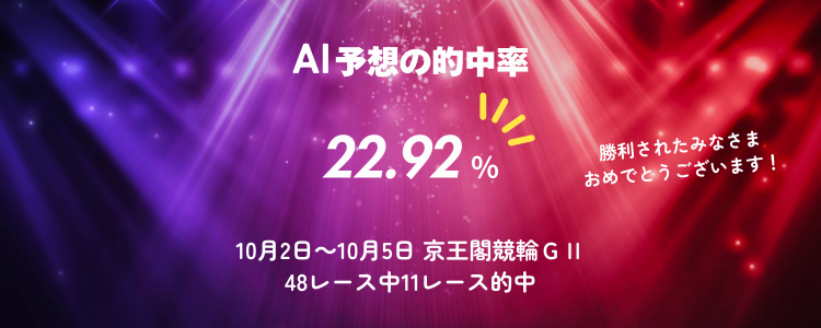 ※お客様ご自身およびAI予想ともに、3連単の賭式のみが的中率の計算対象です。その他の賭式は対象外となります。