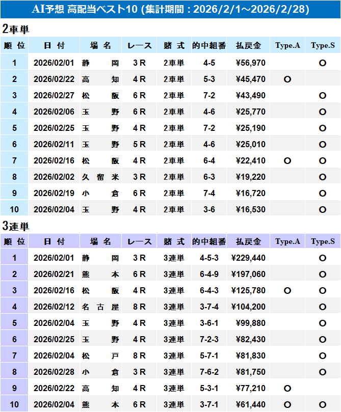 【AI予想】高配当ベスト10をお知らせします!(集計期間:2026/2/1~2026/2/28)