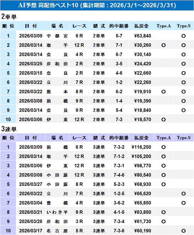 Loto Placeで提供しております”AI予想”の”高配当ベスト10”をお知らせします!